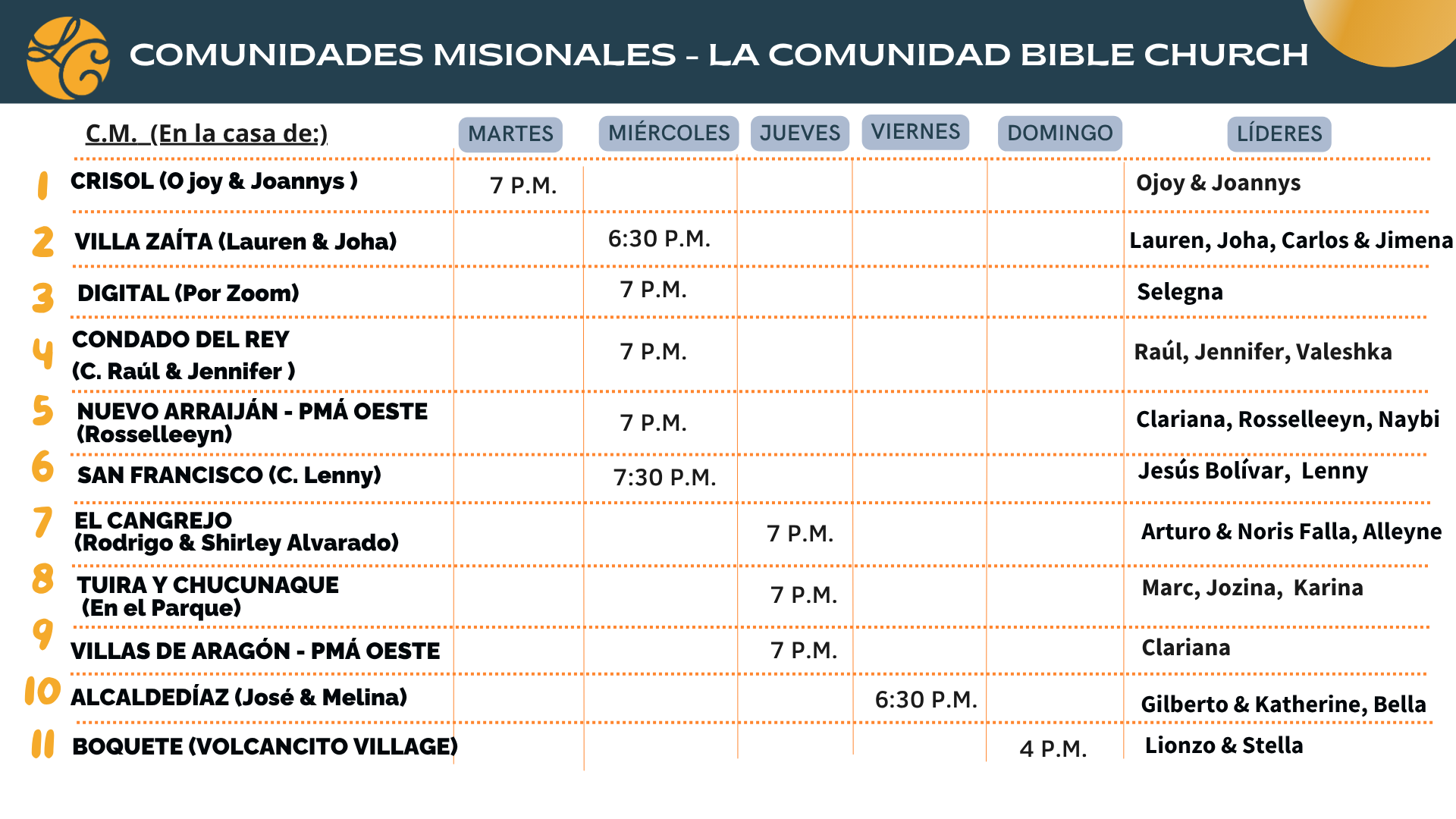 Somos una familia multicultural de creyentes en Cristo, intentando buscar a Dios y Su verdad juntos en comunidad y luego tener un estilo de vida que difunda esa verdad durante la semana en nuestras respectivas esferas de influencia.